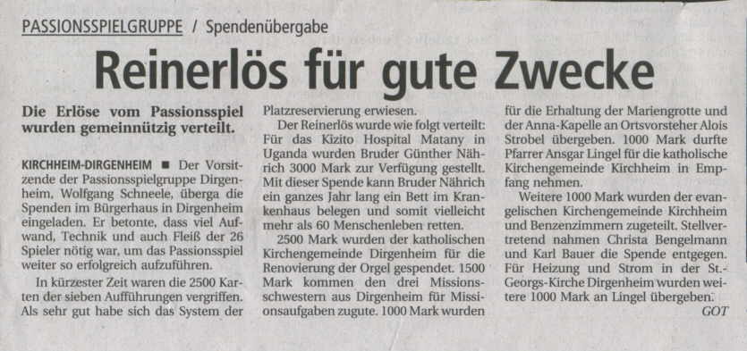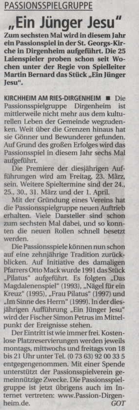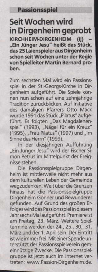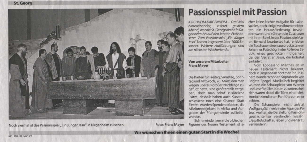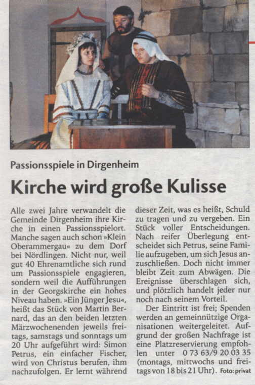 gewesen, einmal bei den Passionsspielen in Dirgenheim dabei zu