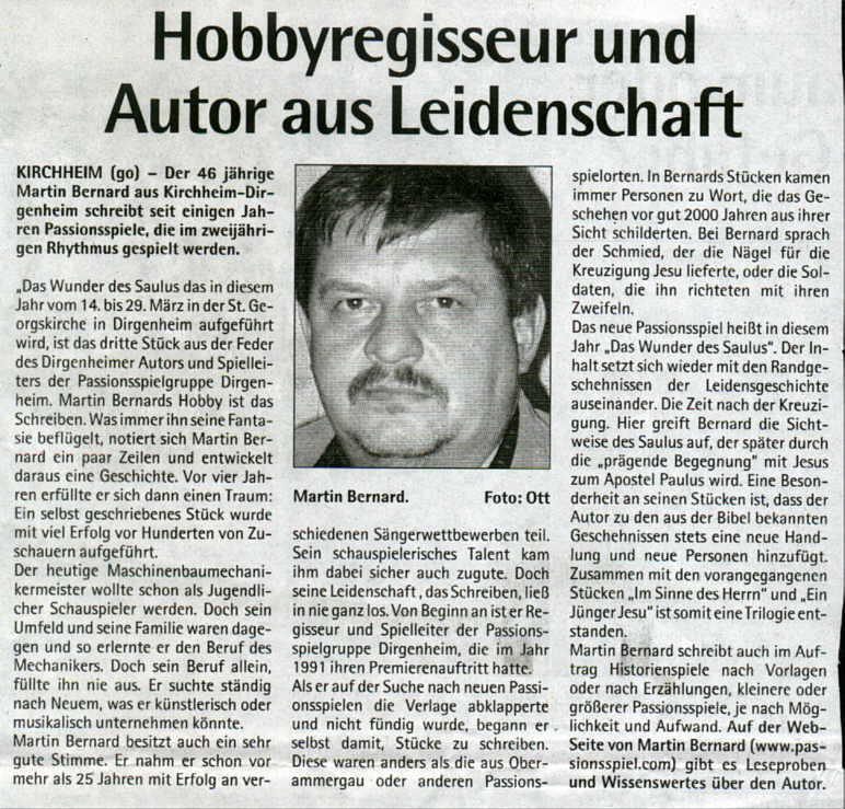 Feder des Dirgenheimer Autors und Spielleiters der Passionsspielgruppe,