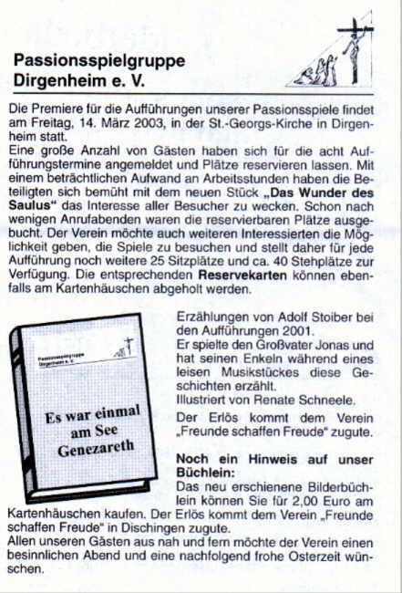 Passionspiel den Hananias verkörperte, hat ein Gedicht