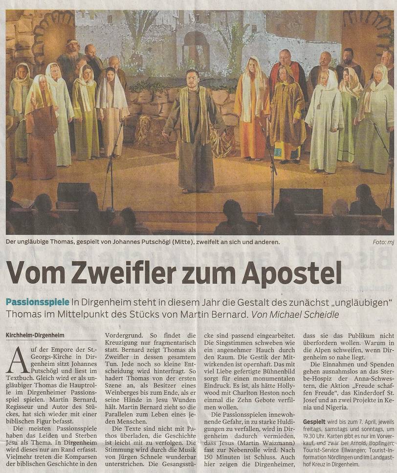 genannt Didymus (Zwilling) war einer der zwölf Vertrauten von